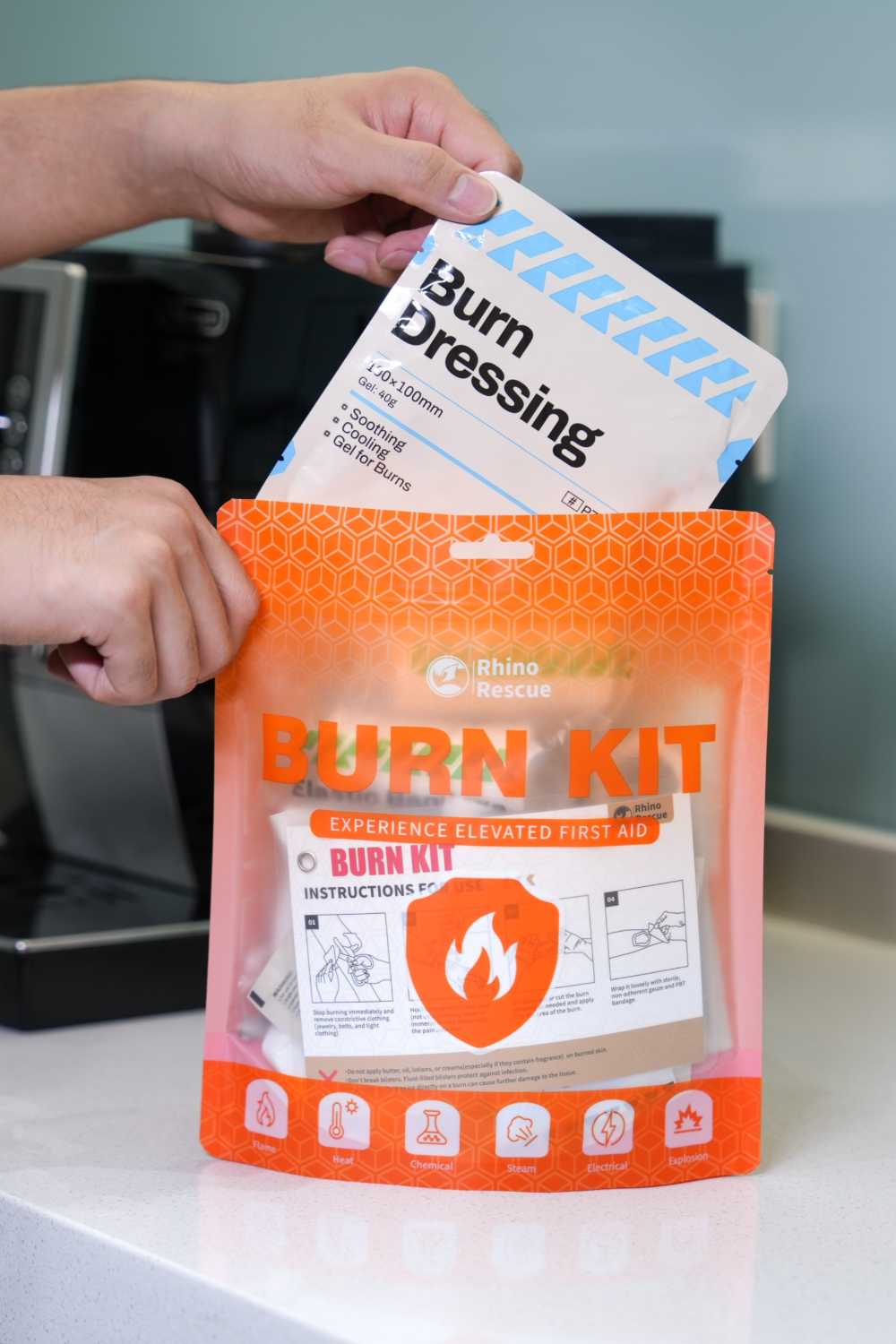 RHINO RESCUE Burn Kit integrates scientifically formulated cooling gel with medical non-woven dressings, delivering instant cooling, pain relief, and infection control through core components like burn dressings and hydrogel tubes. Its biodegradable hydrogel layer adheres directly to wounds without pre-cooling, halting deep-tissue burn progression across flame/chemical/electrical injuries. EO-sterilized for prehospital sterility compliance, the lightweight design supports home/construction/vehicle deployment, providing life-saving professional equipment for global responders.