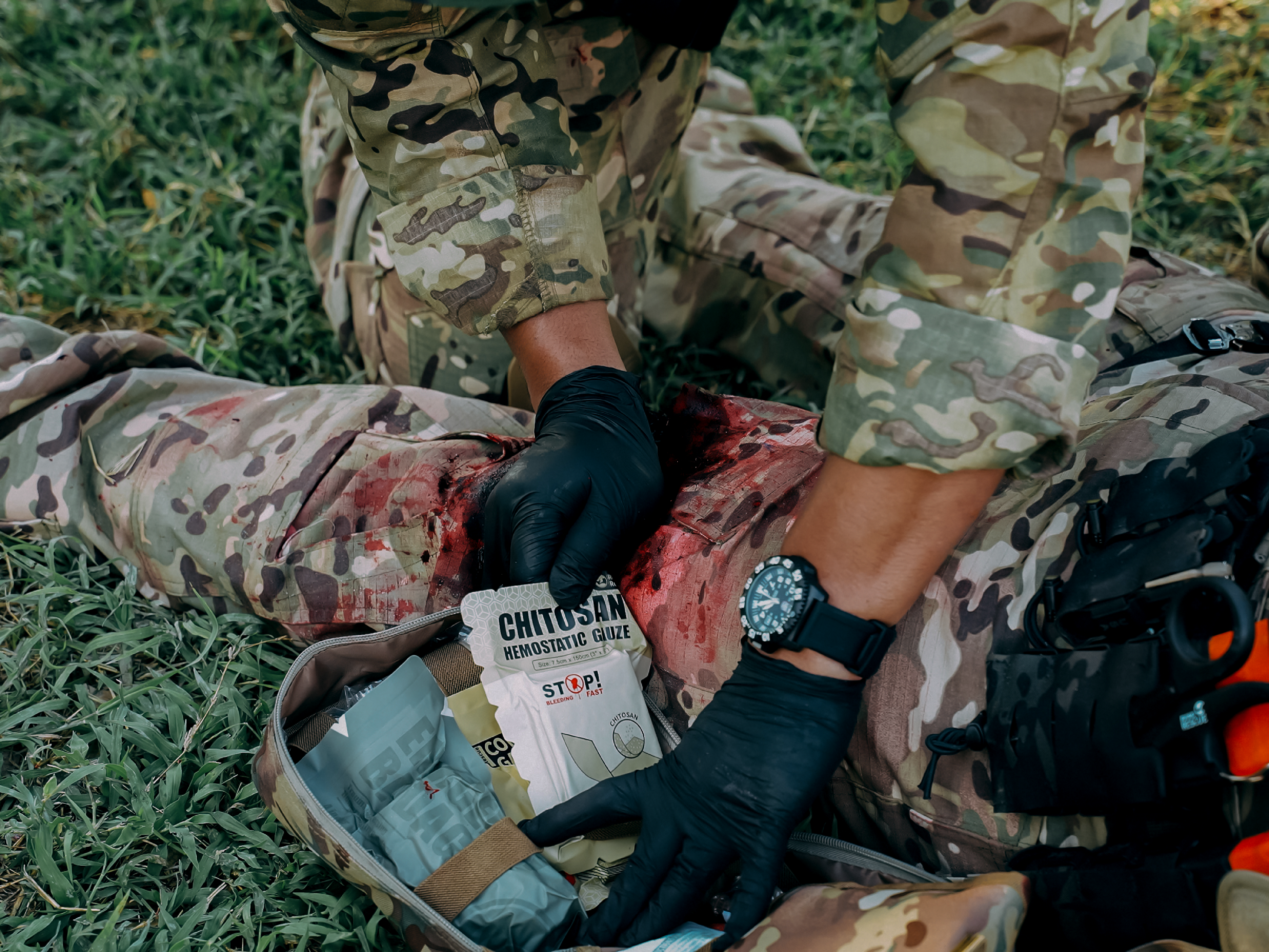 RHINO RESCUE Chitosan Hemostatic Gauze delivers rapid, reliable control of all traumatic bleeding—whether from mechanical injuries, traffic accidents, or battlefield wounds. The woven structure quickly conforms to superficial or deep wounds on the head, face, limbs, or torso, accelerating clot formation within minutes.